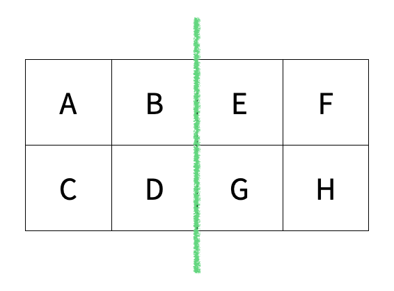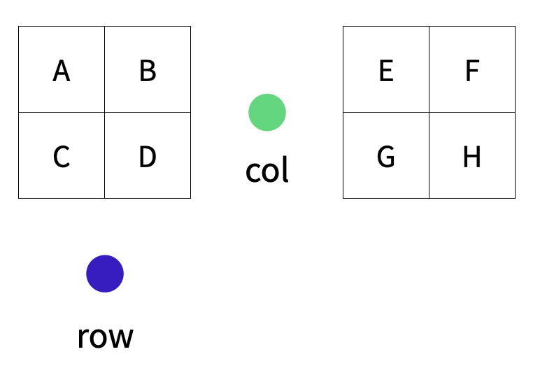 ['G', 'H'], columns=['1', '2',], index=[4, 5])