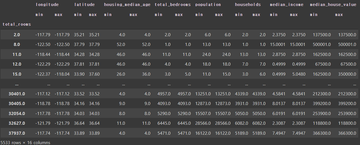 total_rooms으로 groupby실행