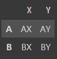 x = pd.DataFrame([['AX','AY'],['BX','BY']], index = ['A','B'], columns = ['X','Y'])