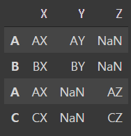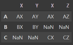 y = pd.DataFrame([['AX','AZ'],['CX','CZ']], index = ['A','C'], columns = ['X','Z'])