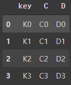 left = pd.DataFrame({'key': ['K0', 'K4', 'K2', 'K3'],