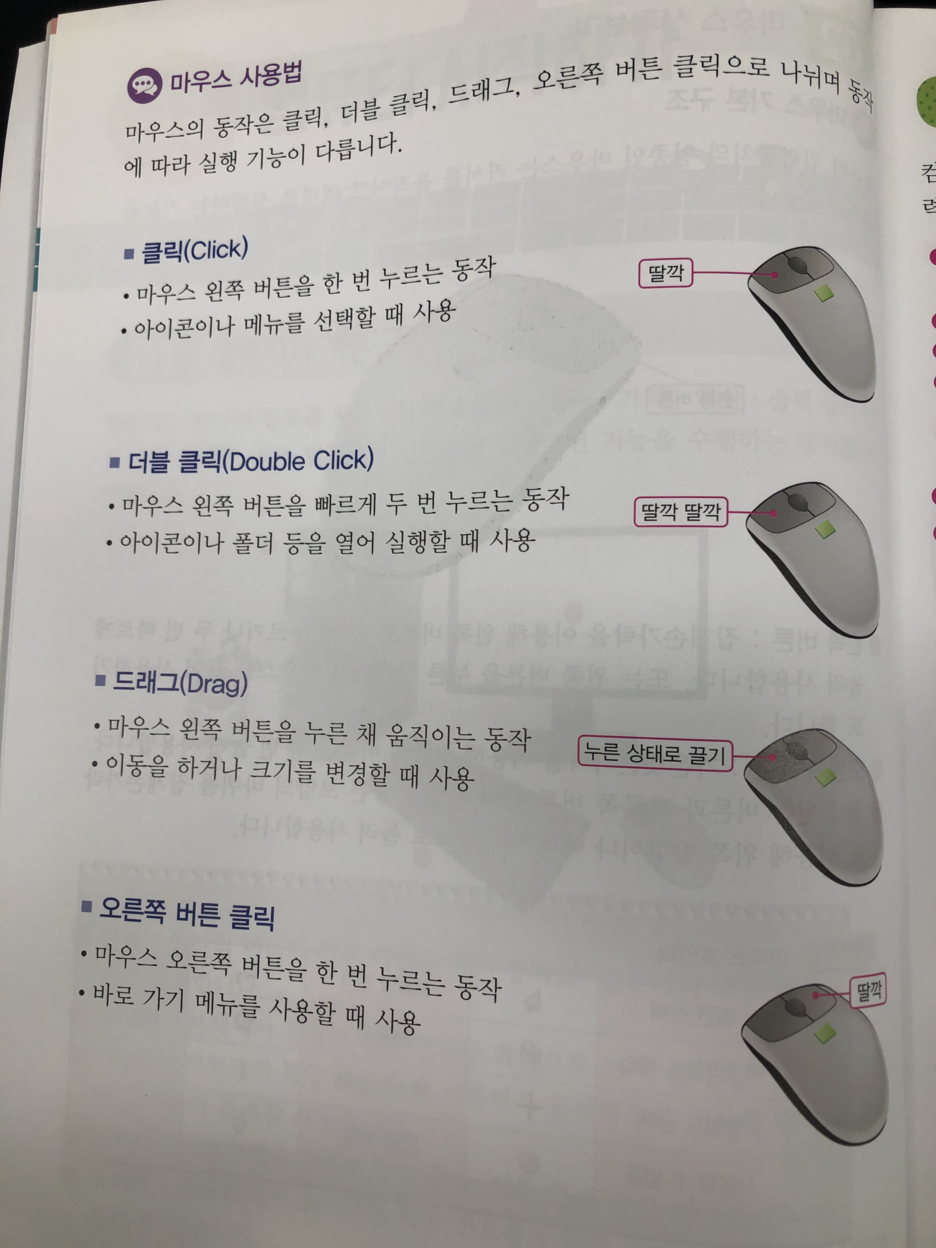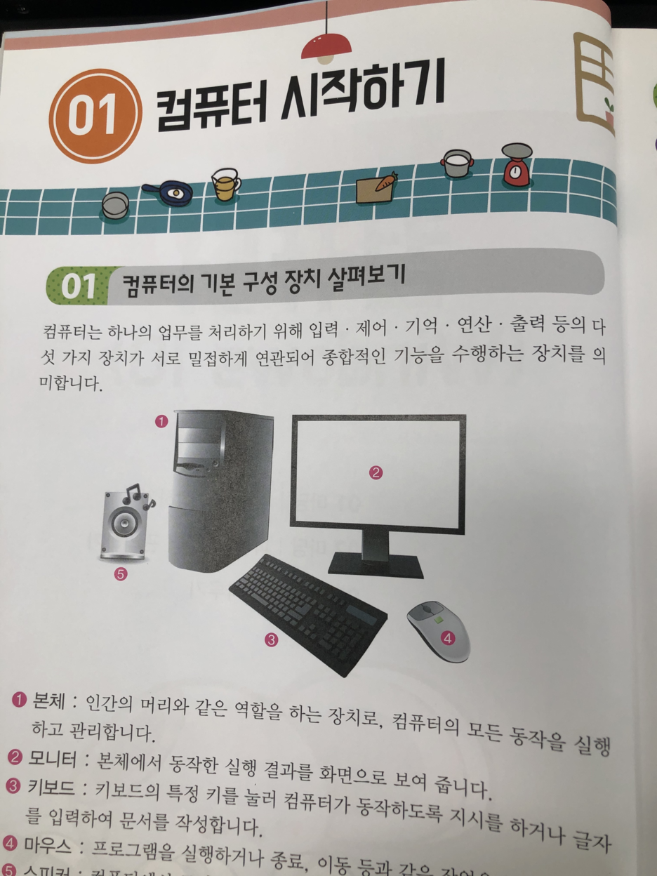 컴퓨터 기본을 살펴보면 처음에 컴퓨터의 구성부터 마우스 다루는법,