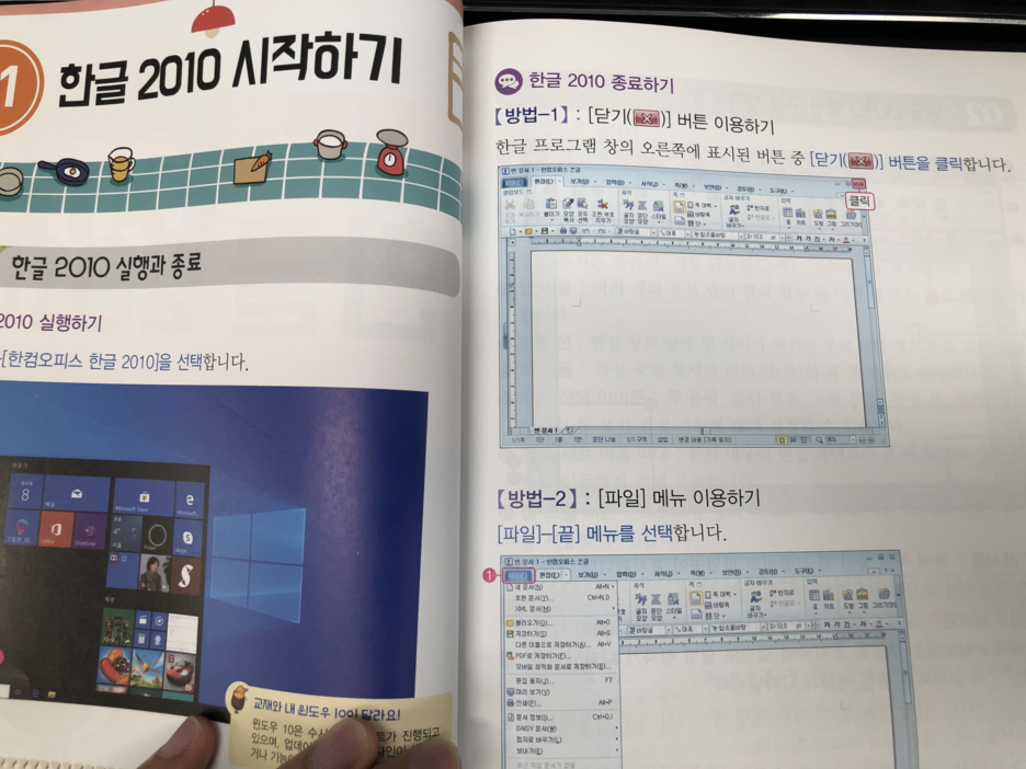 그리고 컴퓨터 기본진도를 넘어가면 한글 2010 시작부터