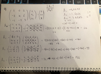 Cramer's rule을 사용해 x1, x2, x3의 값을 구하세요.