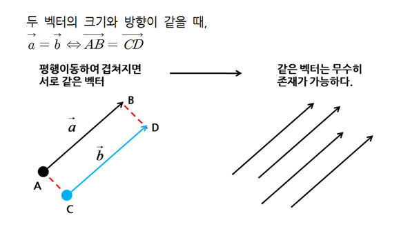 두 벡터가 길이가 같고 같은 방향을 가르킬 때 그 두 벡터를 서로 상등(Equal)하다 라고 할 수있다.