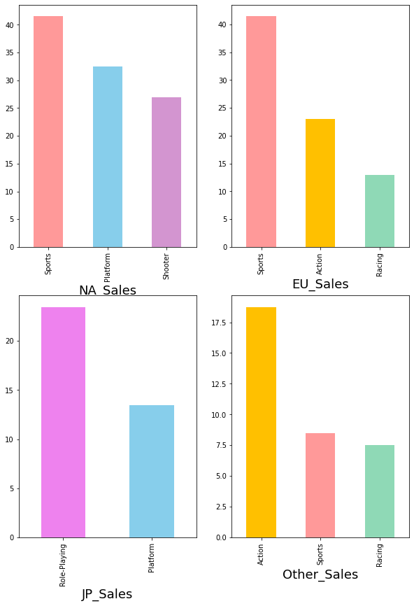 일본은 'Role-Playing'장르가 가장 많은 판매량을 볼 수 있었고 다음으로 'Action', 'Sports'순이다.