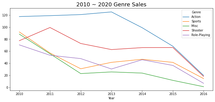 - 2010 - 2020 : 'Action'장르는 상위권을 유지하는데 반해 'sport'의 인기는 줄어들고 'shooter'장르가 다시 급 상승