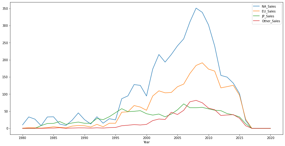 - 시간에 따른 장르별 판매량의 차이가 있을까?(line차트)