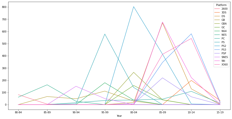 ▷ 시간에 따른 플랫폼별 판매량의 차이가 있을까?(line차트)