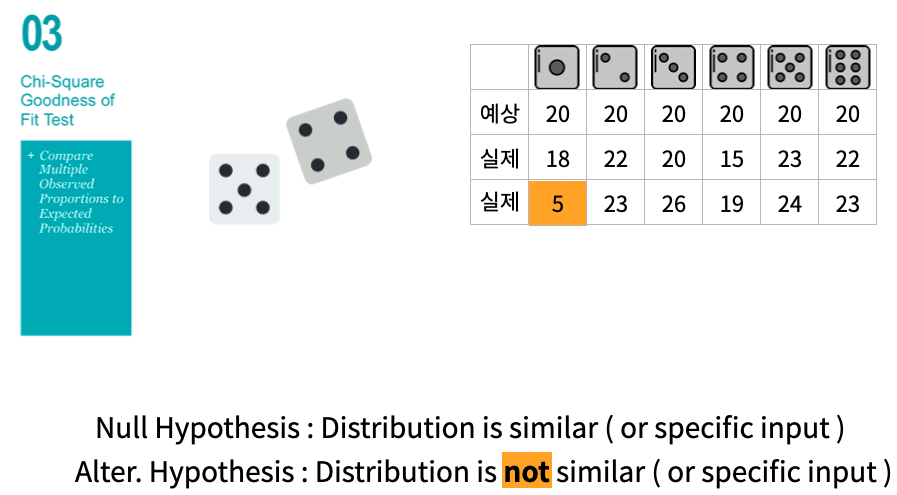 주어진 데이터가 특정 예상되는 분포와 동일한 분포를 나타내는지 에 대한 가설검정.