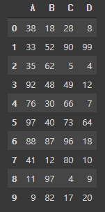 data = pd.DataFrame(data = {'A' : a, 'B' : b, 'C' : c, 'D' : d})