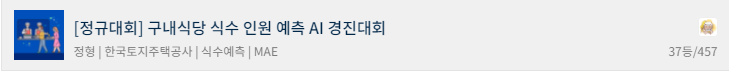 url_train = "https://raw.githubusercontent.com/ZeusKwon/data-drive/main/235743_%EA%B5%AC%EB%82%B4%EC%8B%9D%EB%8B%B9%20%EC%8B%9D%EC%82%AC%20%EC%9D%B8%EC%9B%90%20%EC%98%88%EC%B8%A1%20AI%20%EA%B2%BD%EC%A7%84%EB%8C%80%ED%9A%8C_data/train.csv"