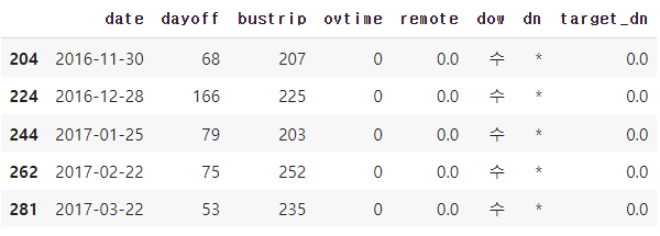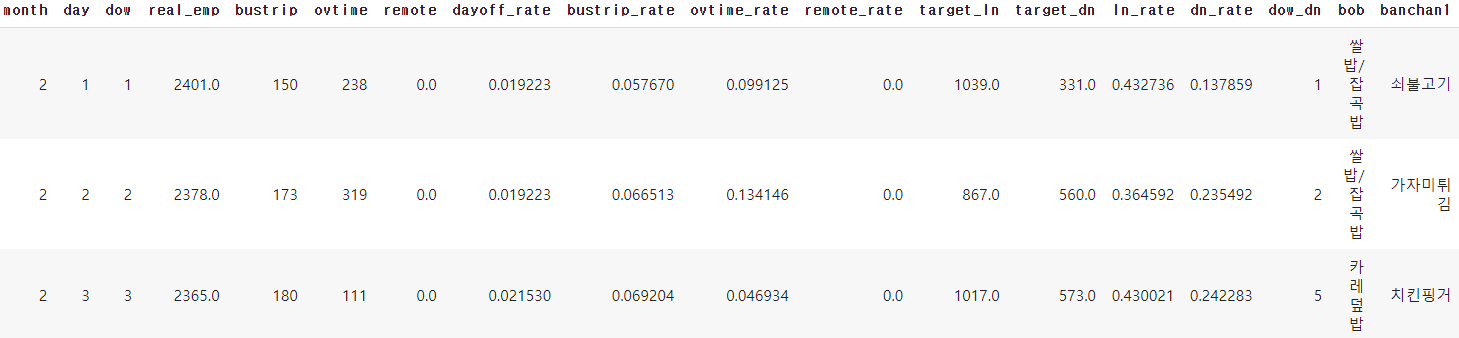 train_eng.columns = ['date', 'dow', 'employees', 'dayoff', 'bustrip', 'ovtime', 'remote', 'brk', 'ln', 'dn', 'target_ln', 'target_dn']