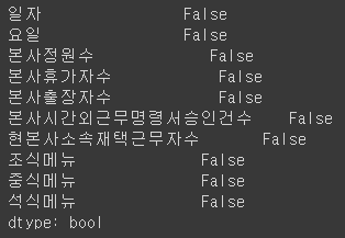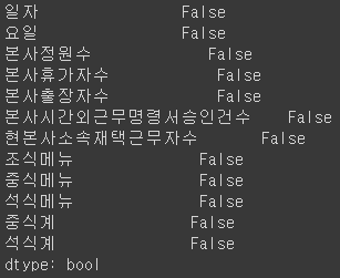- 데이터 결측치 확인