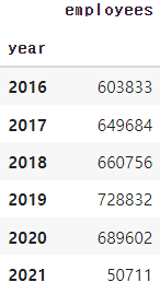 혹시 2020년동안 총 직원수가 늘어나서 그런건지 확인
