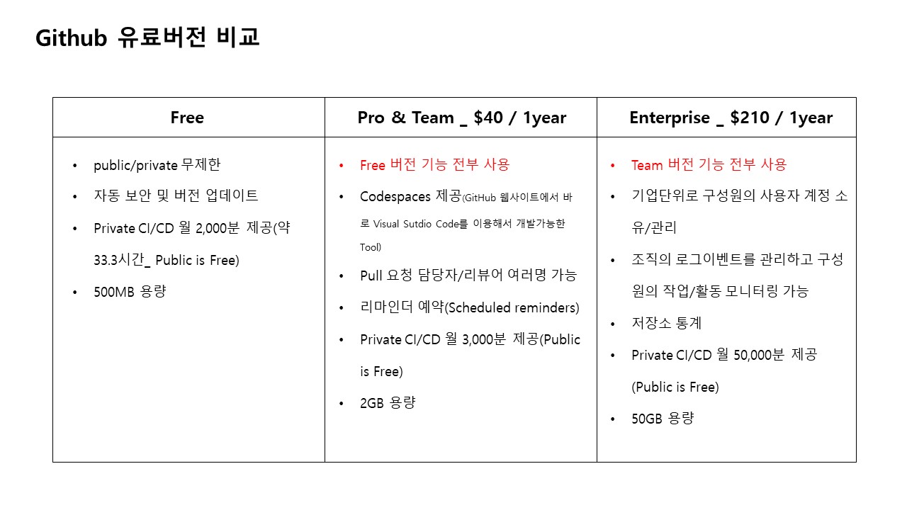 그래서 이번에 Github의 private인원은 몇명이고 유료버전의 기능이 어떤게 있는지 조사를 해보라는 지시를 받았다. 조사한 내용을 정리해본다