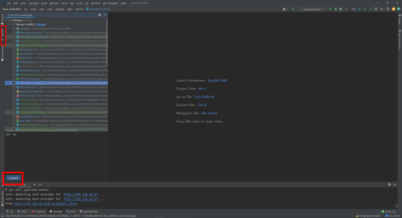 - Intellij 왼쪽 탭에서 “Commit”버튼 클릭 후 나오는 목록 확인해서 더블클릭(전부 하나씩 확인해서 적용하기)