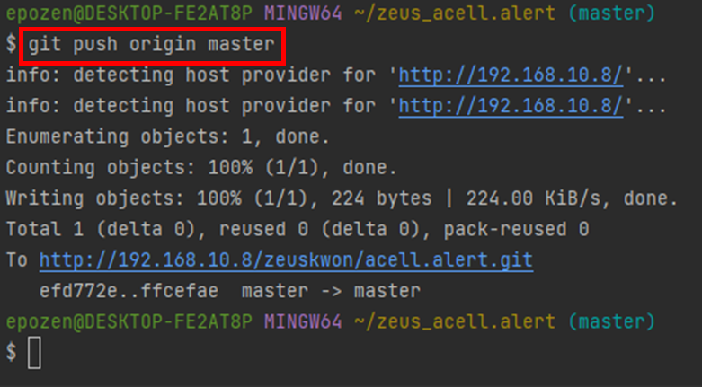 - 로컬 저장소의 개인 원격저장소로 메인 master코드 Push