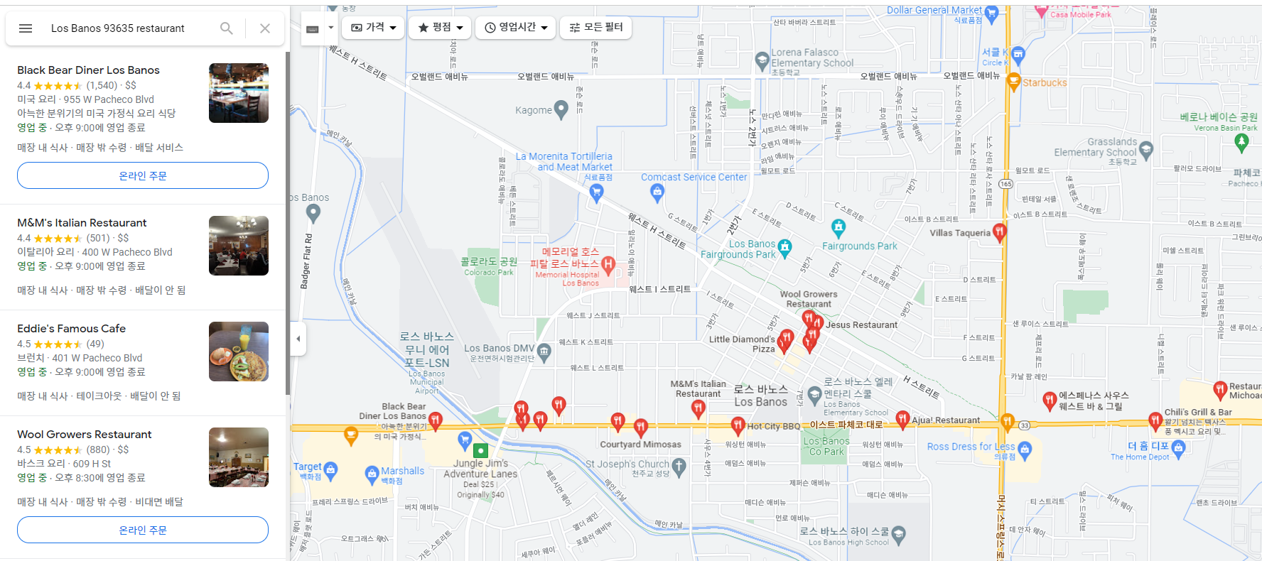 search_box.send_keys(Keys.ENTER) #검색창에 "Los Banos 93635 Restaurants" 입력