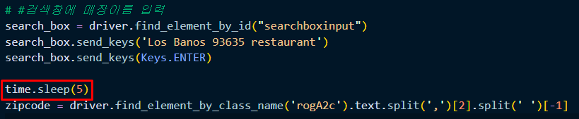 그래서 아래 코드처럼 time.sleep(시간) 코드로 잠시 기다렸다가 데이터를 가져오면 에러가 해결된다.