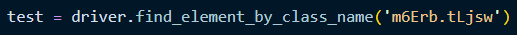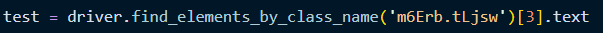 위 사진처럼 class_name이 여러개일 경우에는 find_elements_by_class_name를 사용해서 리스트형태로 받은 다음에 저 순서에 맞게 데이터를 가져오는 방법이 있다.