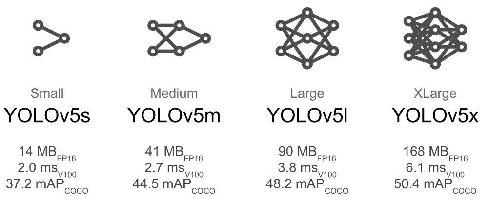 YOLOv5 모델에는 모델 내 네트워크의 크기에 따라서 선택해서 사용할 수 있는데