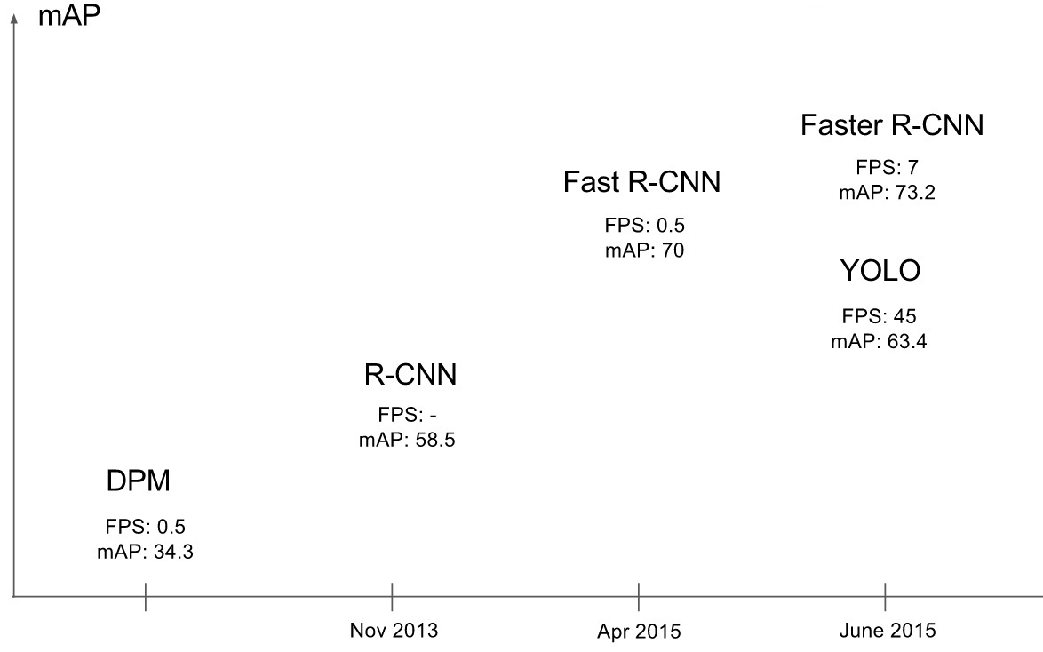 위 그림에서처럼 Faster R-CNN보다 성능(mAP)는 낮지만 속도(FPS)는 훨씬 높은것을 확인할 수 있다.