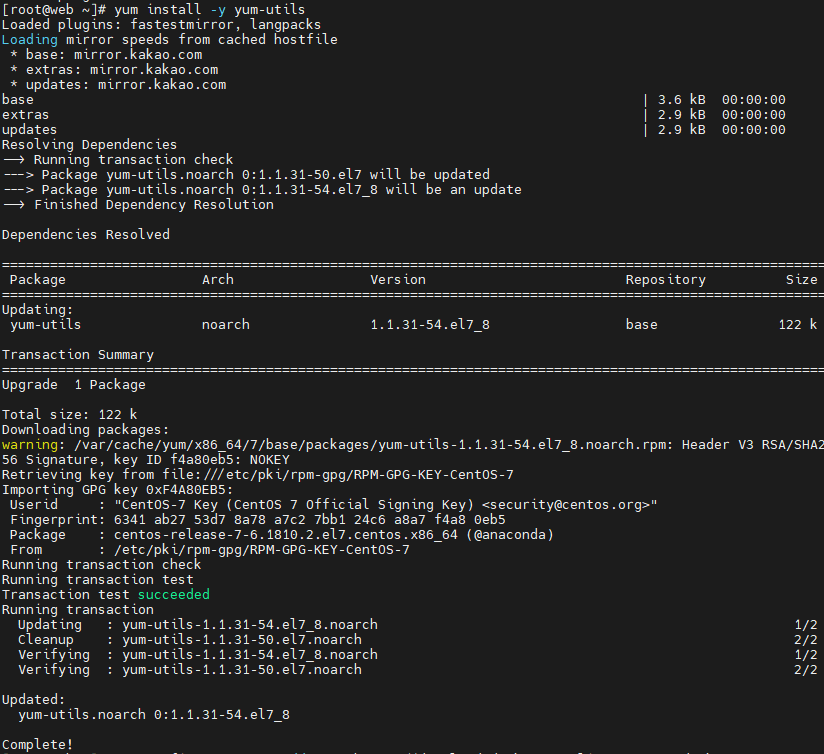먼저 yum-utils를 최신 버전으로 업데이트 해야 함