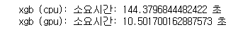 위 결과를 확인하면 CPU시간과 GPU시간이 출력 되는데, GPU사용할 때의 속도차이를 비교할 수 있음