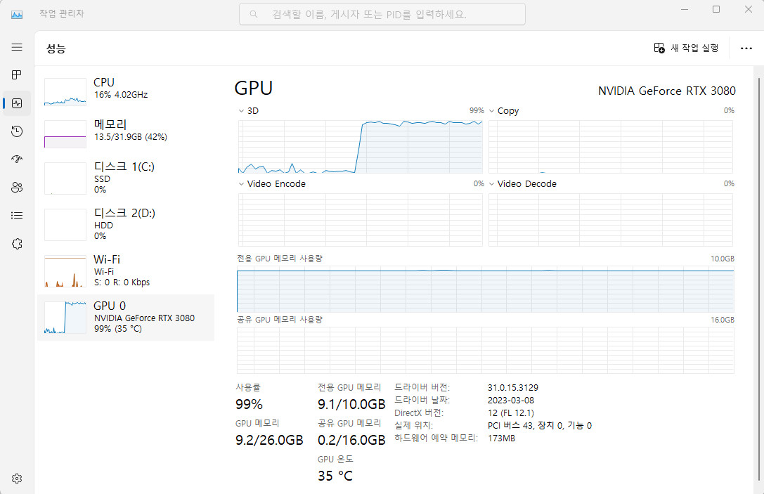- 그래픽카드 : GeForce RTX 3080